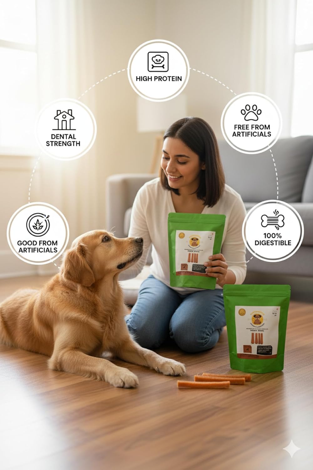 - Promotes Dental Health → Tough texture helps clean teeth, reduce tartar build-up, and strengthen gums naturally.